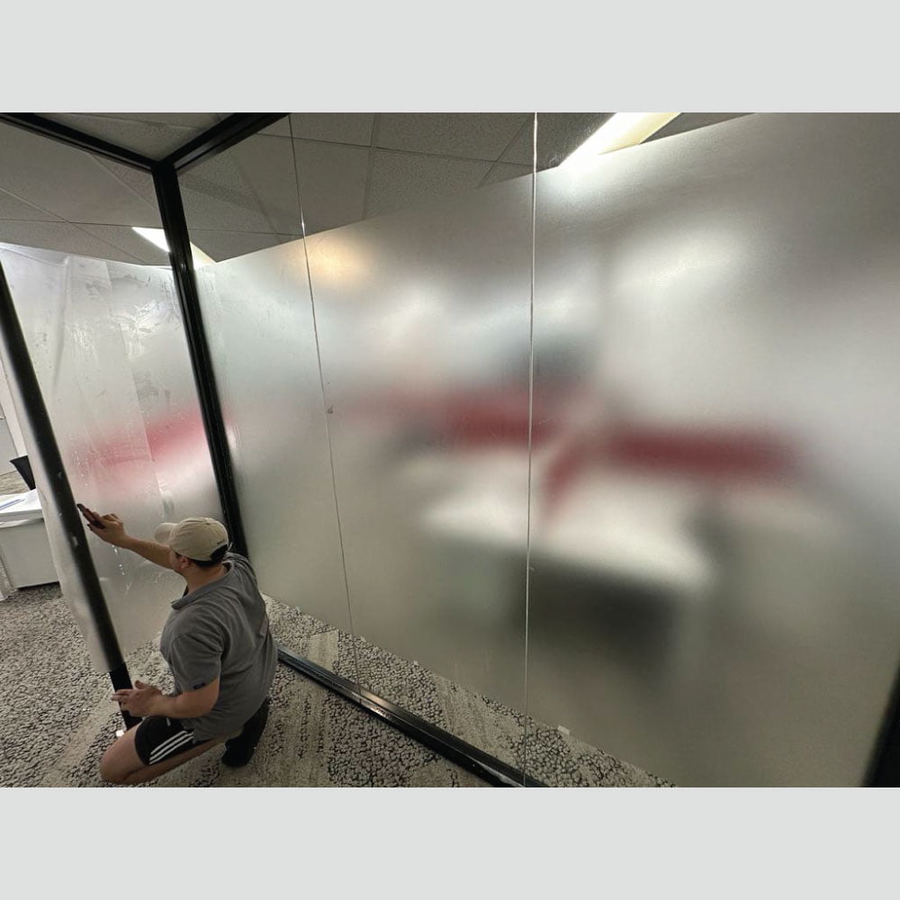 Frosted finish lets light shine through glass but obscures its clarity for an appealing haze. Doors, glass walls or windows can be frosted to let the light in while maintaining the privacy.